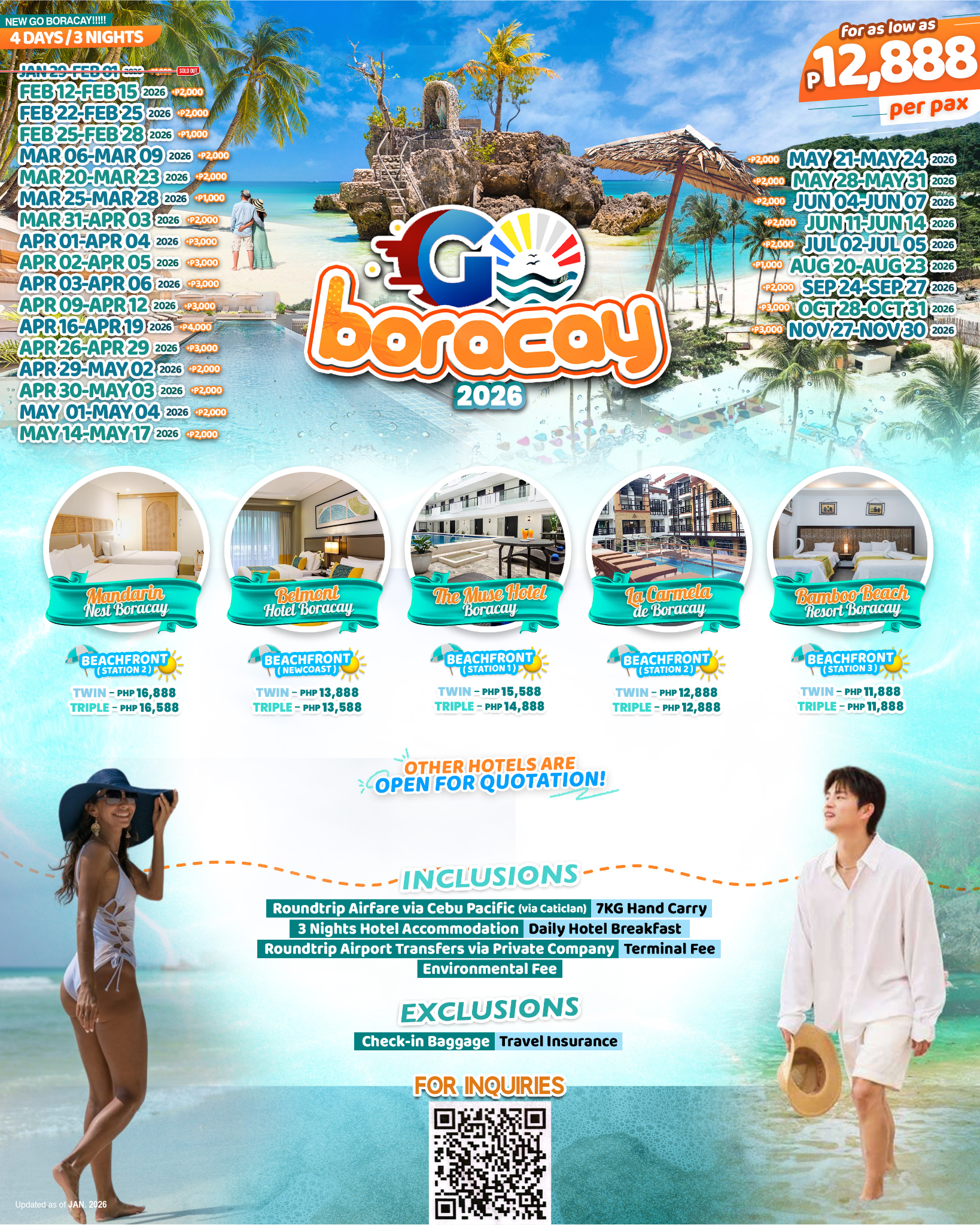 • Roundtrip Airfare via Cebu Pacific (via Caticlan)
